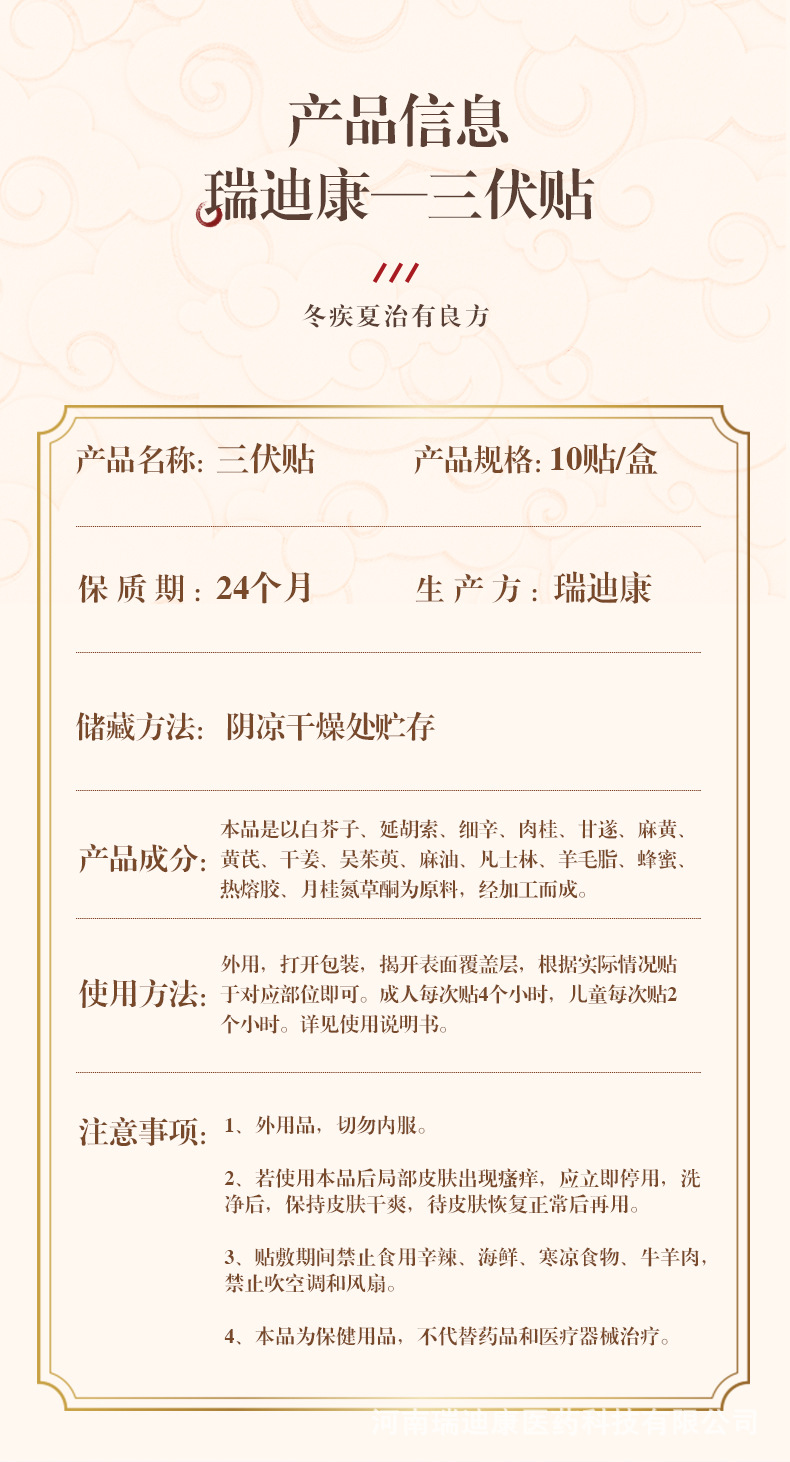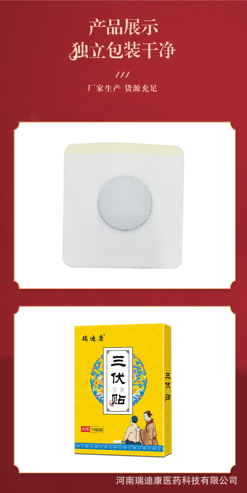 瑞迪康三伏贴三伏天穴位贴温灸贴三伏贴厂家批发生产代加工正品
